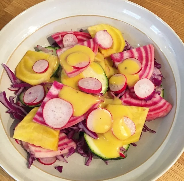 - after allowing the beetroot to cool for 15 minutes, remove skin. dice the beetroot into 1 cm cubes.
